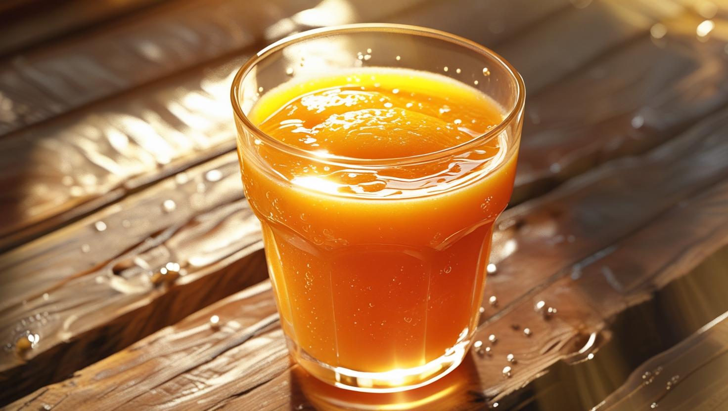 Cam tươi ép nguyên chất, không pha thêm nước, vị ngọt nhẹ tự nhiên, cung cấp vitamin C dồi dào.
