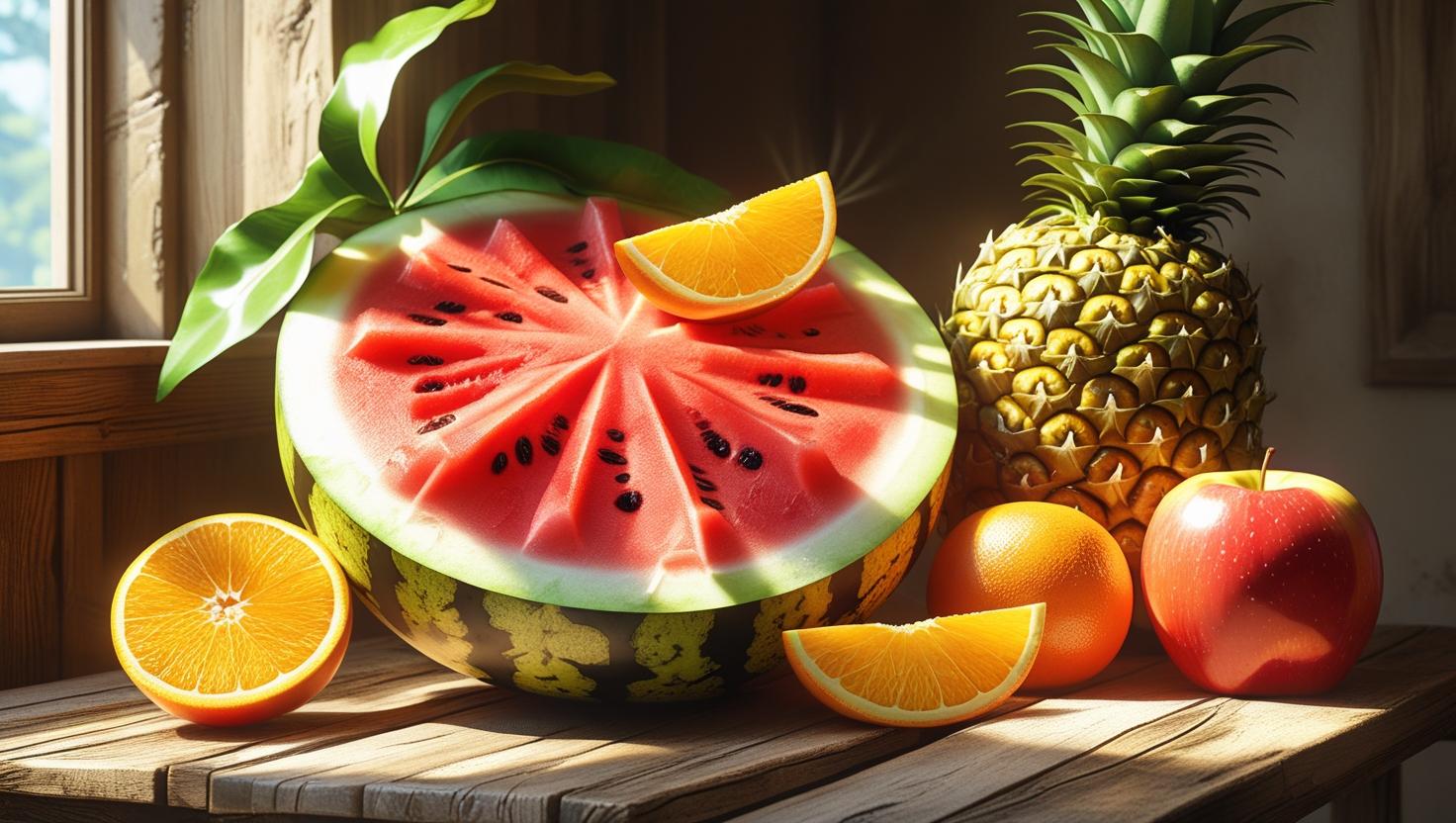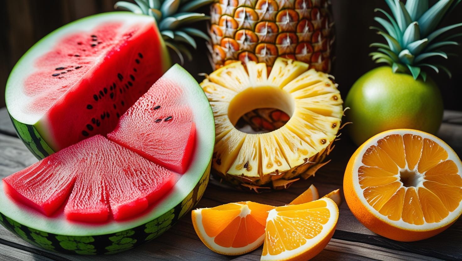 Dưa hấu, dứa, cam, táo... (thay đổi theo mùa), cắt lát đẹp mắt, giữ vị ngọt tự nhiên.