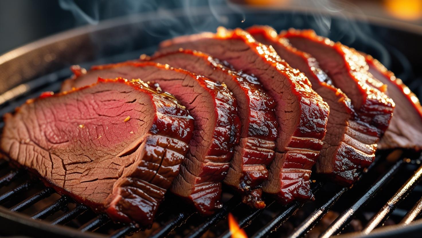 Ba chỉ bò Mỹ nhập khẩu, thái lát vừa, tẩm mật ong và gia vị đặc biệt, nướng trên vỉ sắt để tạo vị thơm, mềm và ngọt dịu tự nhiên.